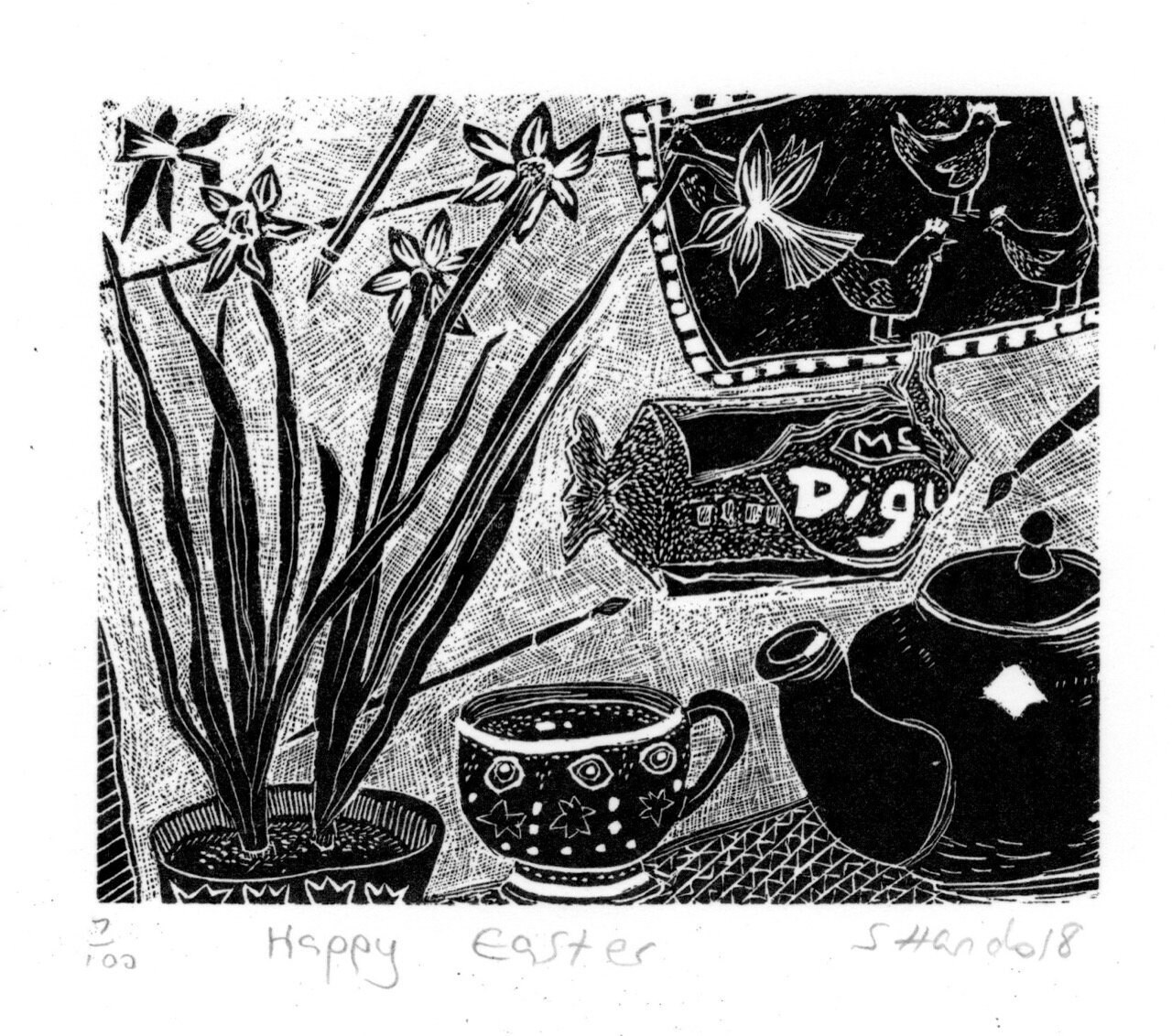Happy Easter Original Print Limited Edition Wood Engraving Etsy Uk