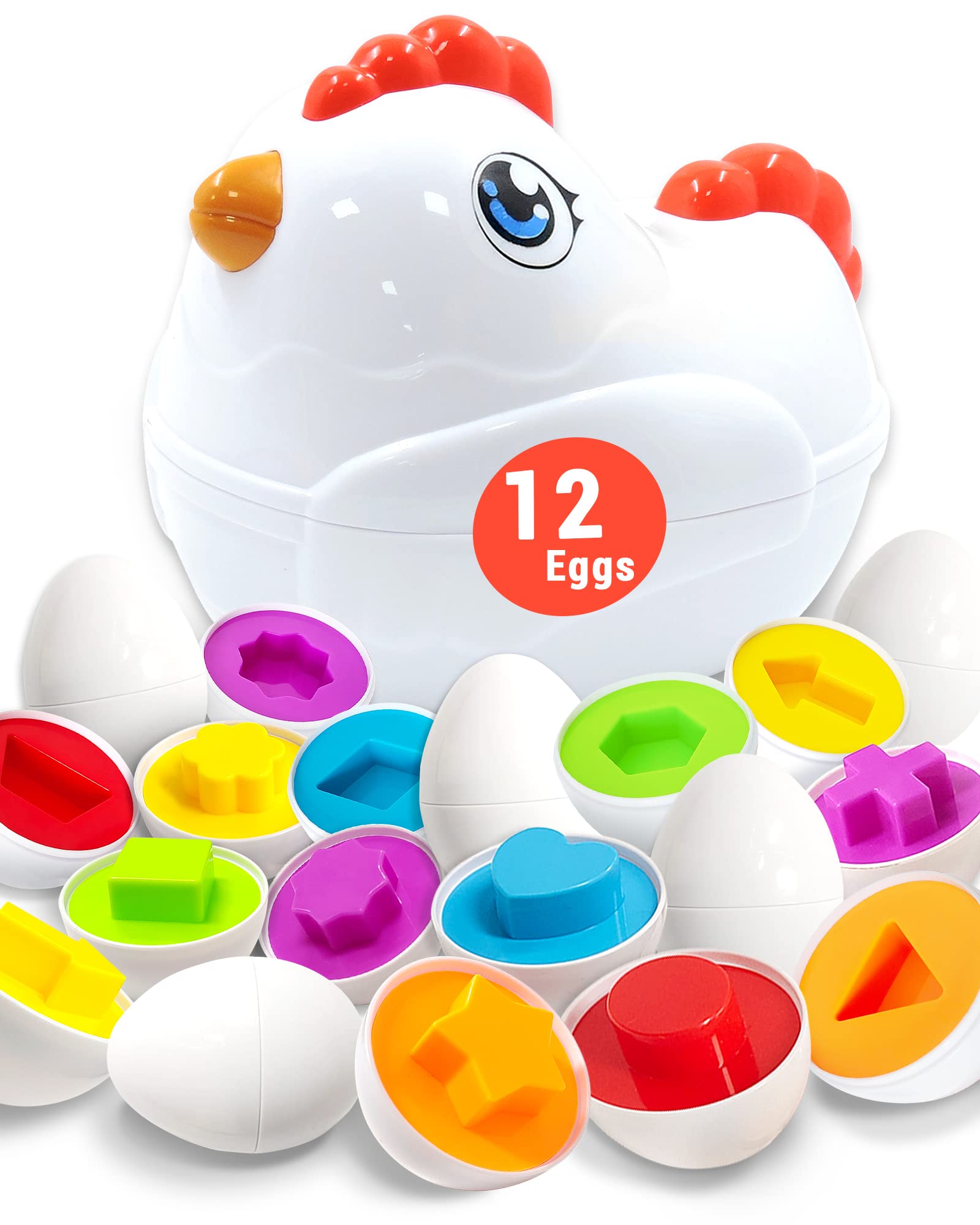 Amazon Com Toddler Chicken Eggs Toys For 18 Month Old Color Matching Shape Sorter With 12 Toy Eggs Sensory Toys Easter Gifts Educational Montessori Toys For 1 2 3 Years Old Babies